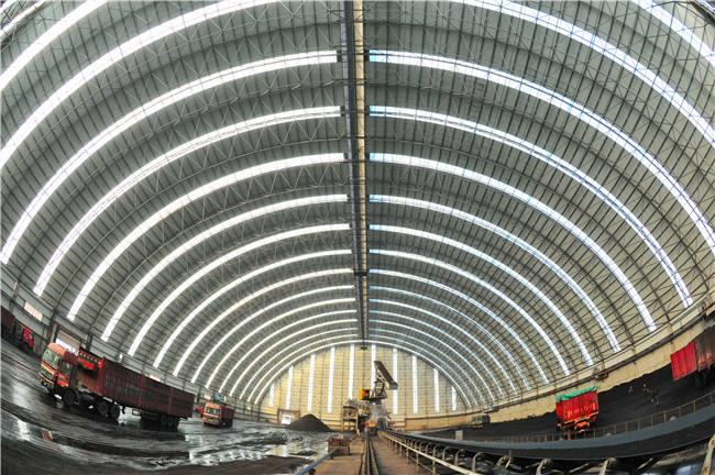 堆场料场封闭式主体结构为新型的钢信阳网架结构,维修结构为信阳钢结构信阳不锈钢板和纤维增强塑料灯具,其外形以信阳网架式和平板为主,连接柱信阳施工自由,设置喷雾自动喷水系统,从而可以实现棚内所有物料的覆盖,减少物料在运输过程中的损耗,起到防尘的作用,减少工厂关闭后的二氧化硫排放量,50mg/m3颗粒排放量小于10mg/m3,非常适合低能耗。低闭库自动感应反应对库存轮胎进行清洁,确保轮胎不受道路污染;封闭的储存区可从源头控制粉尘污染,控制无序排放。